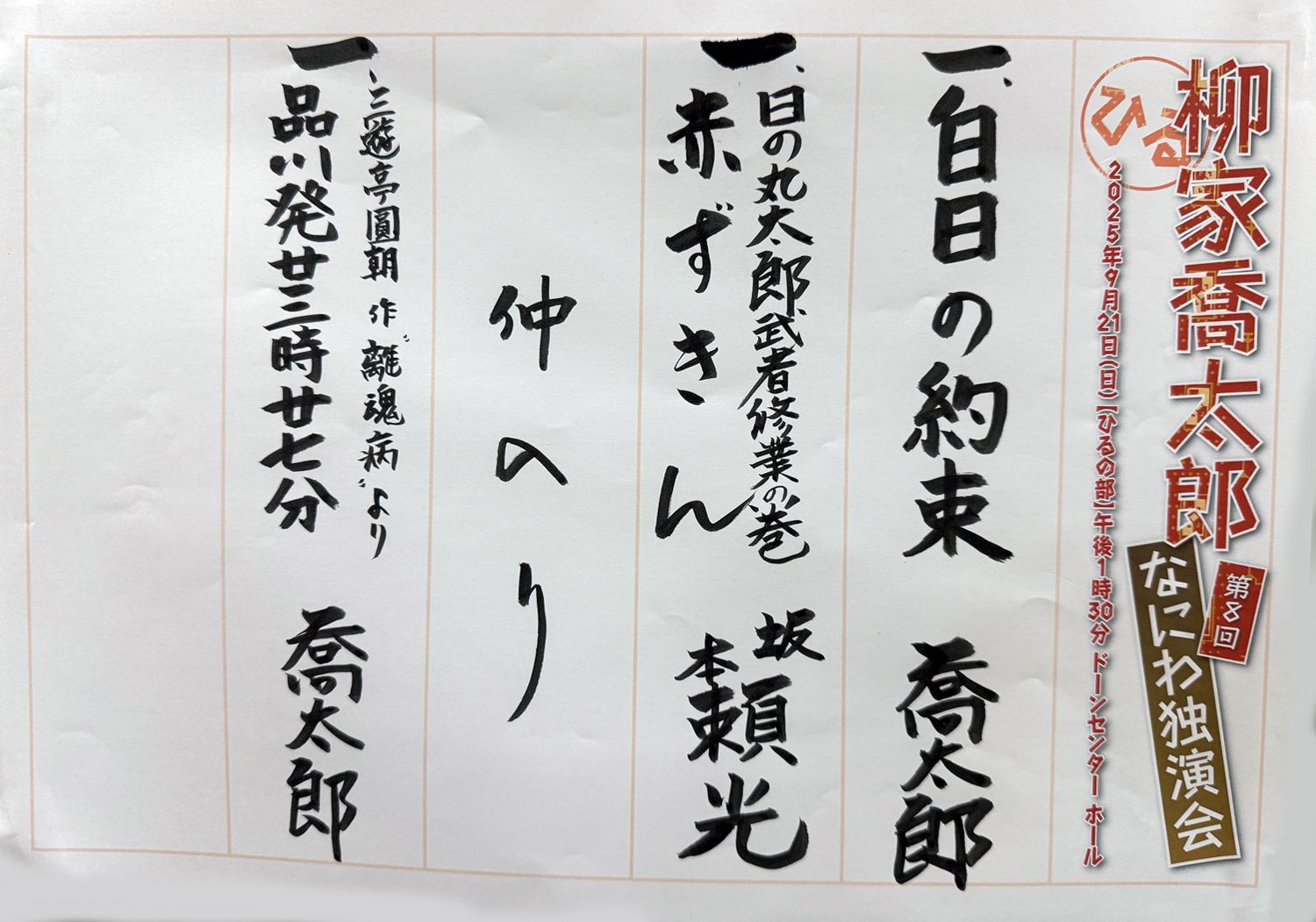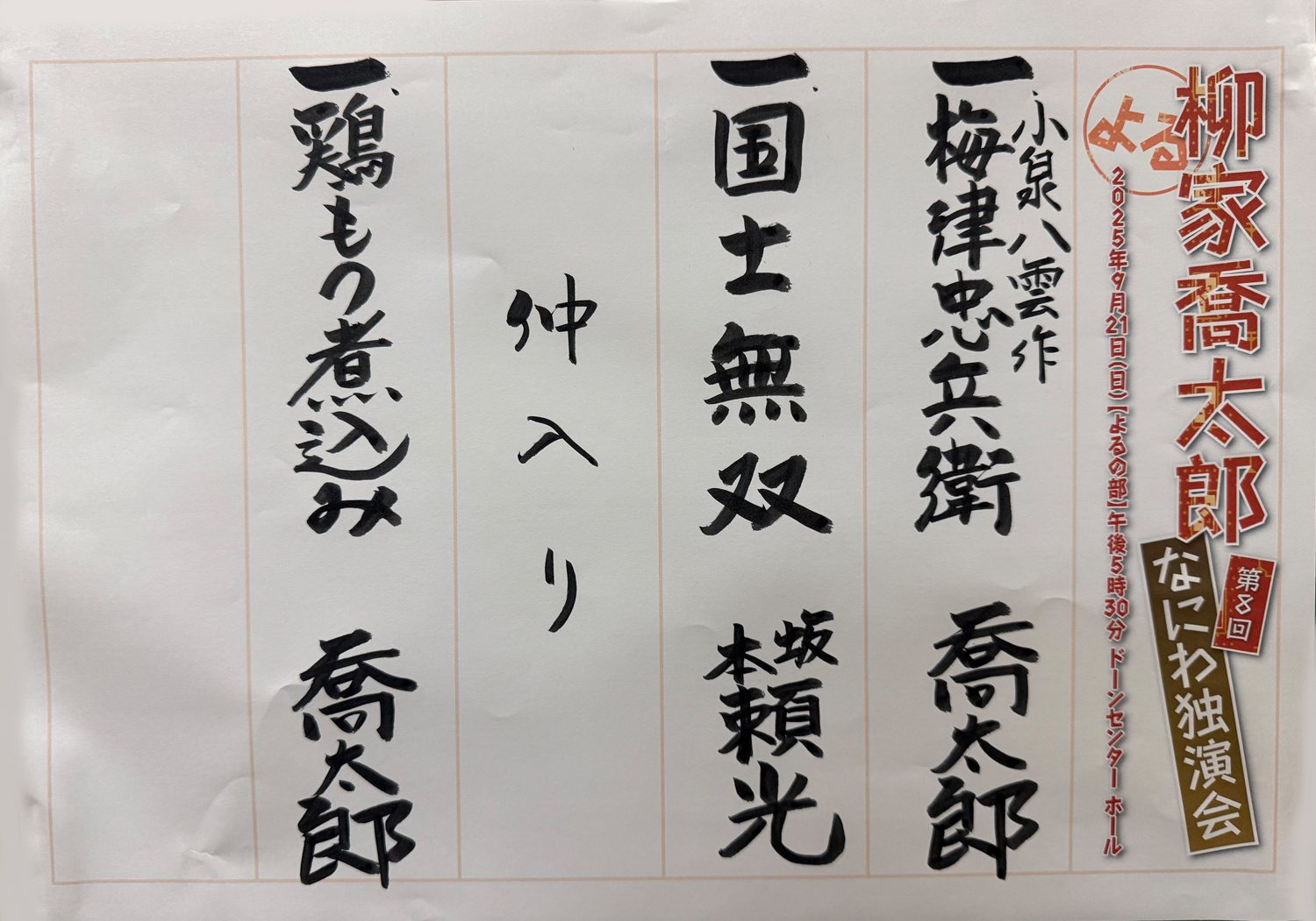 柳家喬太郎公演 〈本日の演目〉 ※よるの部追加