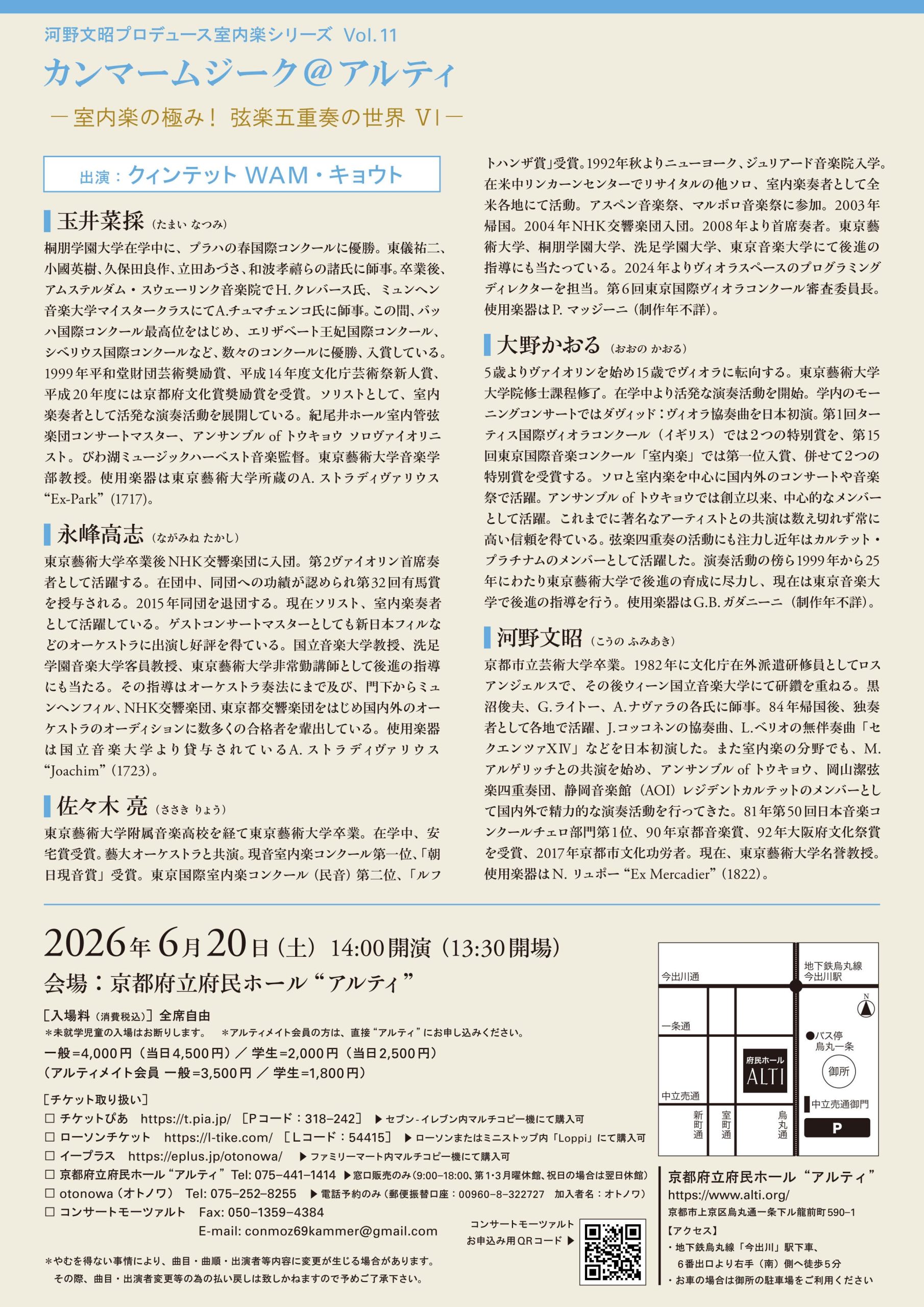 カンマームジーク@アルティ ― 室内楽の極み!弦楽五重奏の世界ⅤI ―