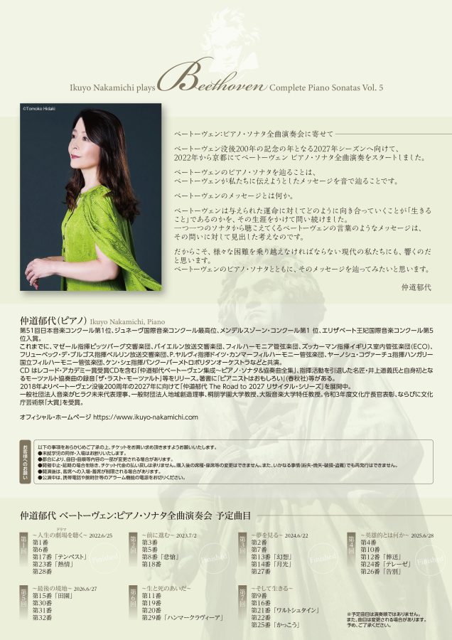 2022年から京都にてベートーヴェン ピアノ・ソナタ全曲演奏をスタートしました。